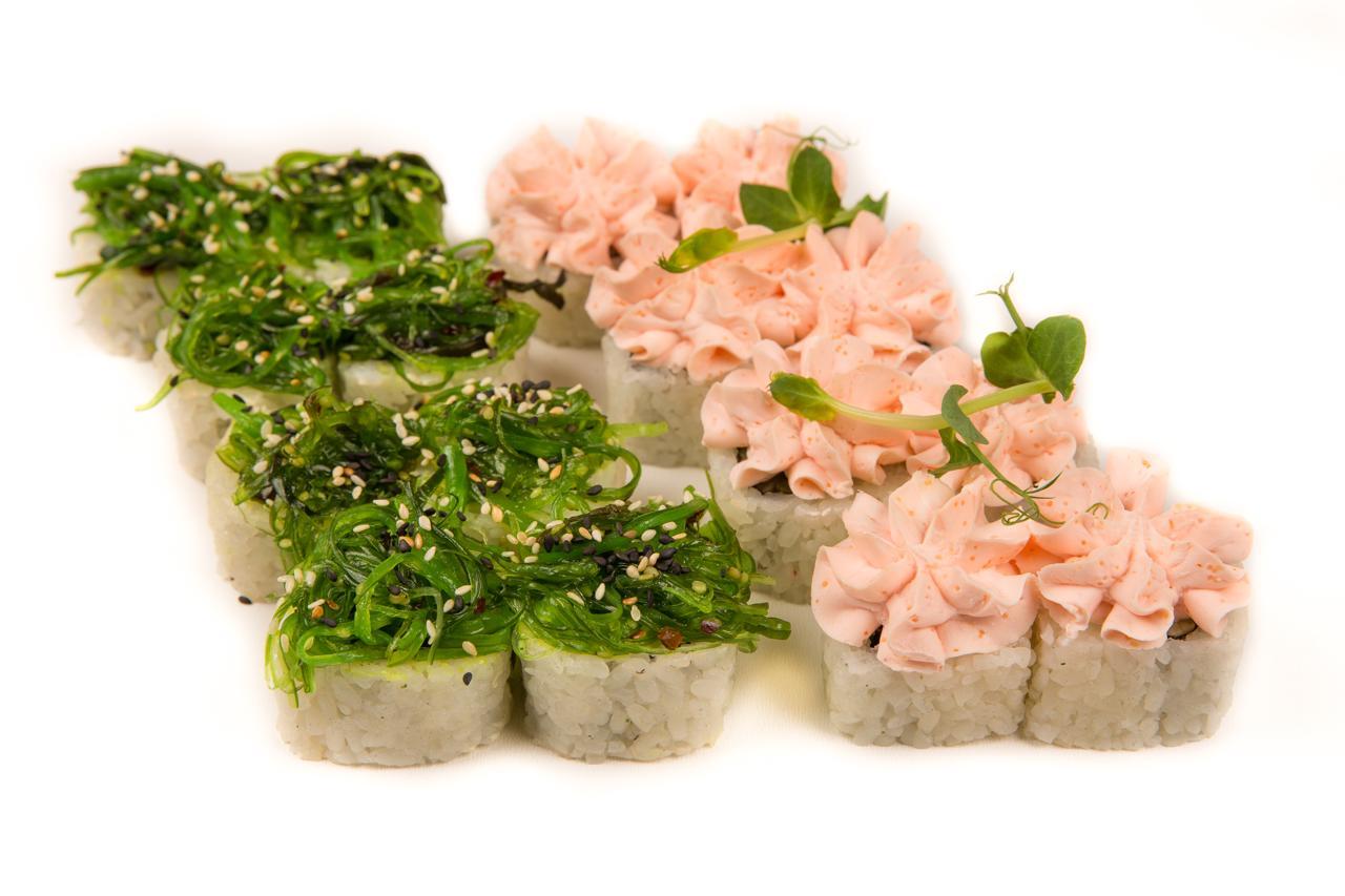 3. Kudzan Hot maki 8шт — сливочный сыр, помидор, огурец, лосось в остром соусе, соус терияки.